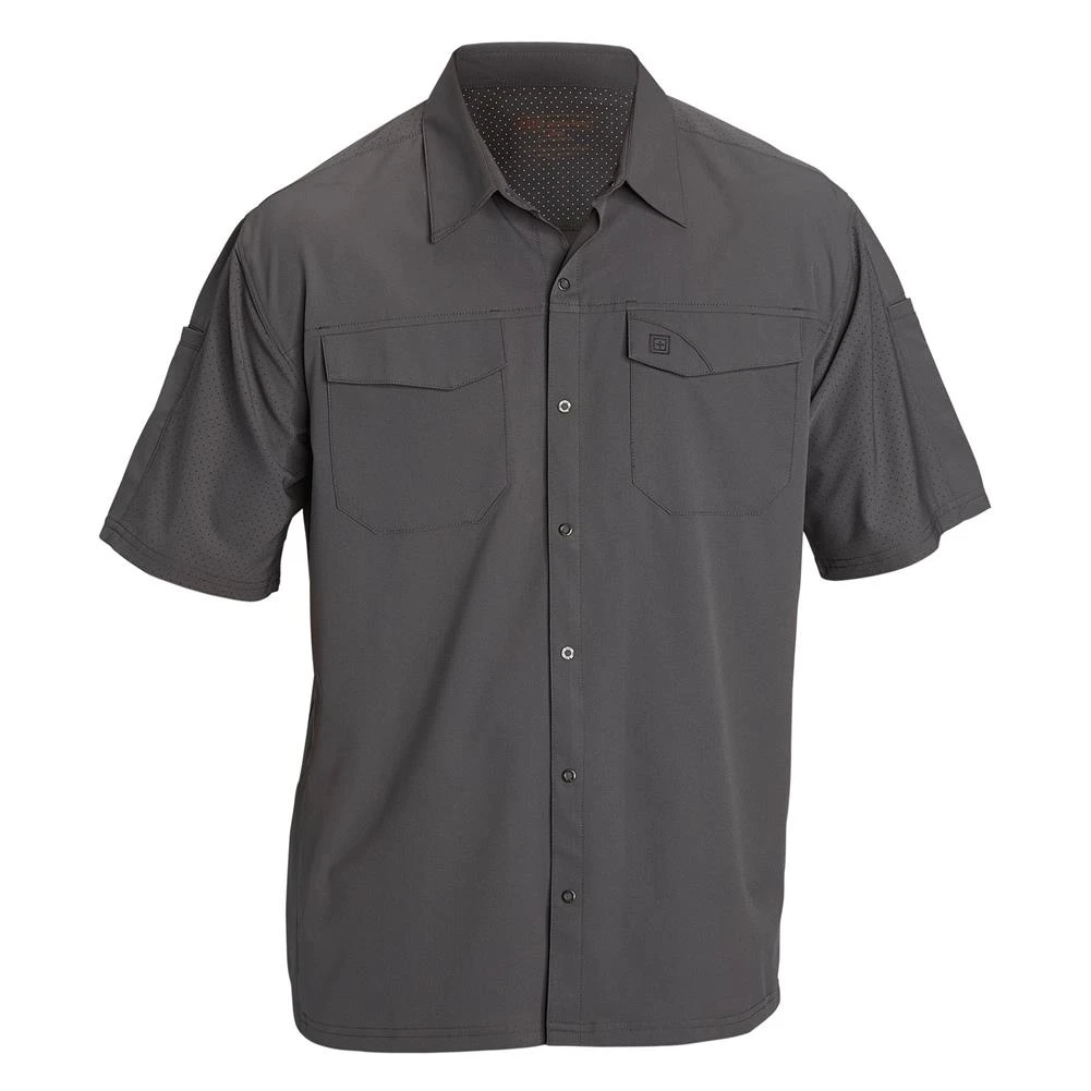 The 5.11 Freedom Flex Short Sleeve Woven Shirt blends comfort, breathability and maneuverability to offer a functional lightweight shirt that can be worn for long periods of time. The naturally wicking polyester material is comfortable enough to wear in hot weather and does not show sweat rings. Perforated panels along the shirt also promote ventilation for a more comfortable fit. Bar-tacking at certain stress points ensures a full range of motion, so mobility is not sacrificed for comfort. There are two chest pockets with spacious storage for any accessories or IDs and the hook and loop flaps keep items secure when in motion. Pen stalls on each sleeve add utility and a RAPIDraw placket makes this shirt perfect for CCW use as well.