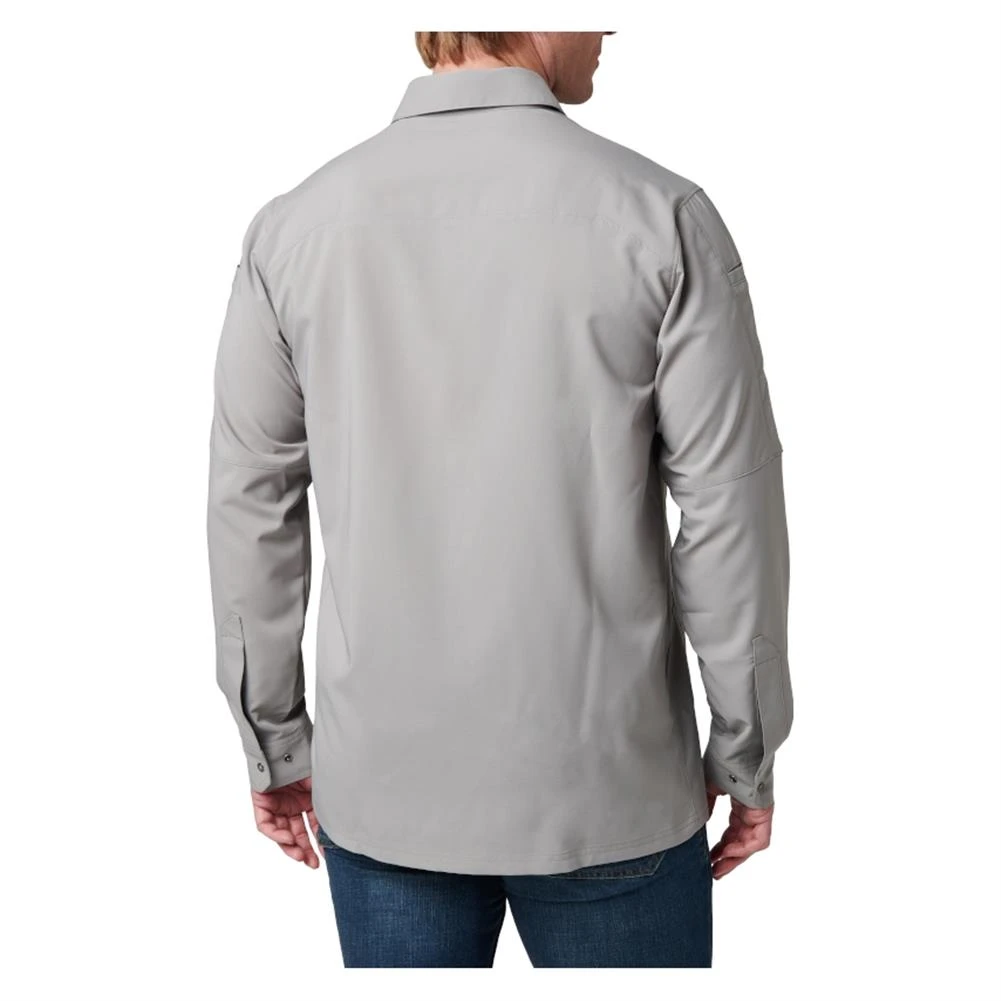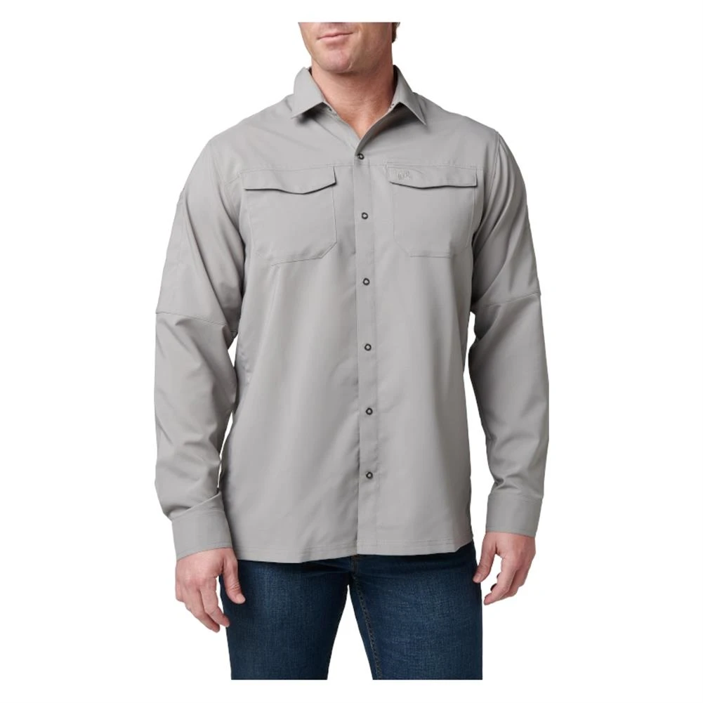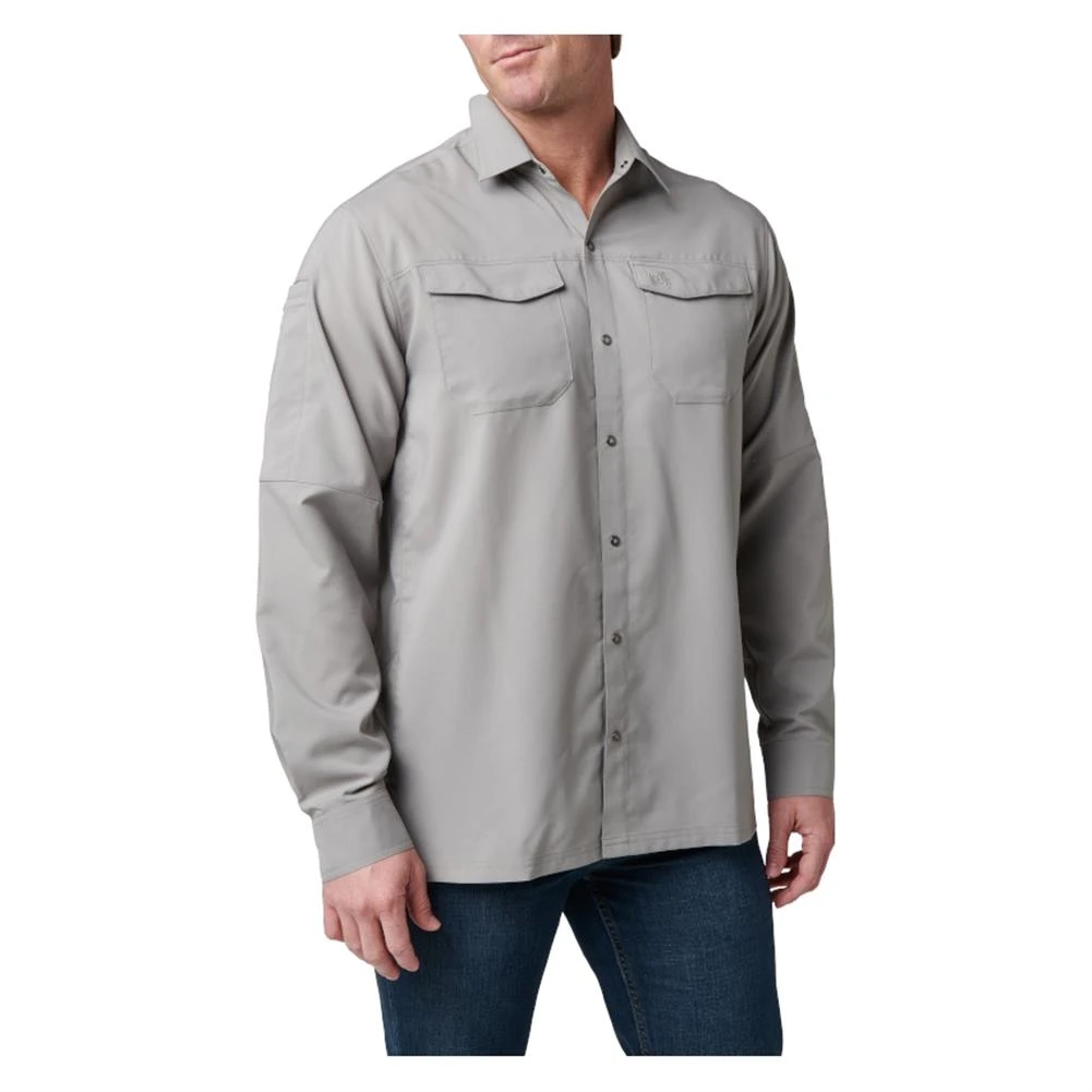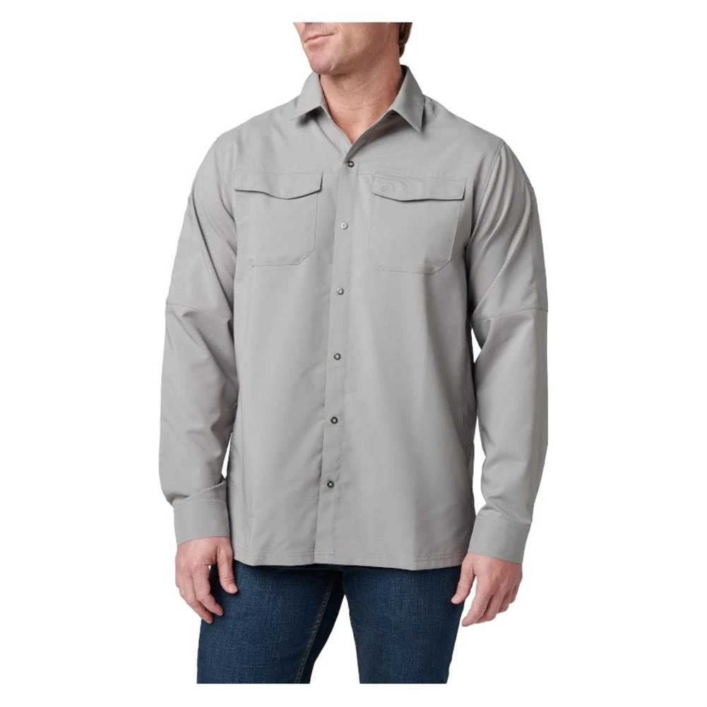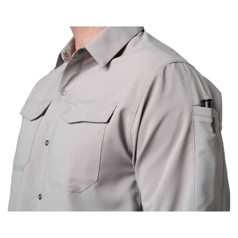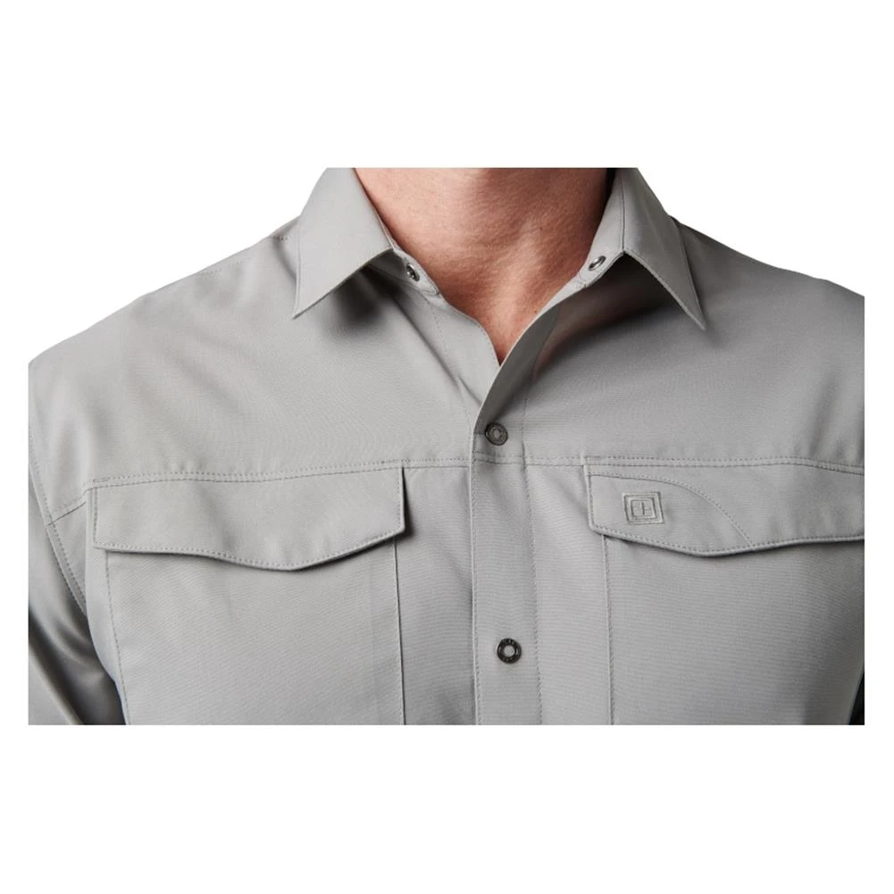 The 5.11 Long Sleeve Freedom Flex Shirt offers flexible, lightweight comfort for indoor and outdoor wear. The shirt is made from breathable 3.9-ounce polyester fabric that promotes mobility and wicks moisture away from your body to keep you cool and dry. Dual pockets on the chest and a wide pen pocket on the right bicep offer convenient places to store small accessories. For concealed carry use, the RAPIDraw center-snap front allows for quick and efficient access to a shoulder holster or holster shirt. The finished hem allows this shirt to be worn tucked in or untucked, giving you a comfortable, functional shirt that’s suitable in most settings.