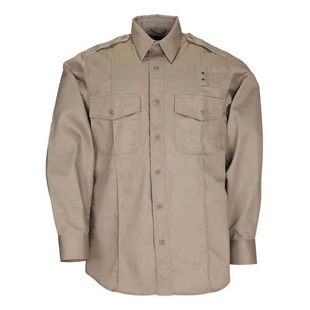 5.11 Men’s PDU Twill Class A Shirt is 5.78-oz twill, Teflon treated long-sleeve shirt and features mic cord pass through, permanent creases, and epaulettes and badge tab satisfying departmental requirement and a professional appearance.