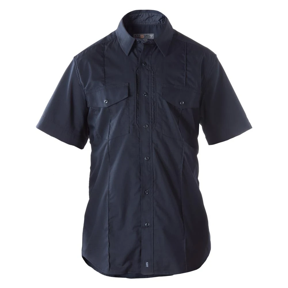 The 5.11 Short Sleeve Stryke PDU Class B Shirt combines high tactical performance capabilities with a clean, professional look. This shirt is made from patent pending, breathable FlexTac ripstop fabric that has been treated with Teflon to resist moisture, stains and soil. Hidden Document Pockets on the chest offer convenient storage for important papers. This shirt is colorfast, fade resistant and made with permanent creases for a sharp appearance in any setting. An epaulette and badge tab kit is included for on duty wear, while pass-through mic cord access on the side seams keeps you connected in the field.