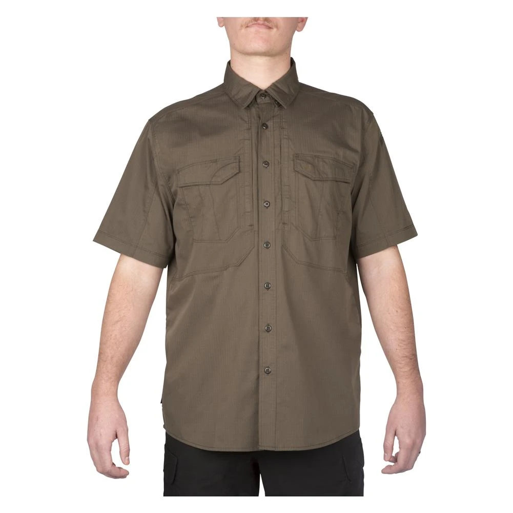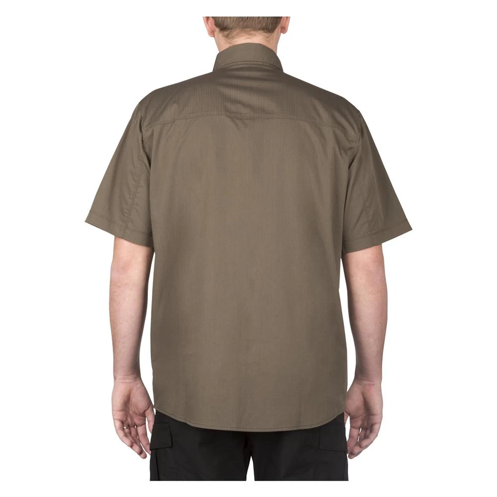 The 5.11 Short Sleeve Stryke Shirt provides the same comfort and performance features as 5.11’s popular Stryke Shirt, but with short sleeves for working in hotter temperatures. Made with 4.84-ounce Flex-Tac mechanical stretch ripstop fabric, this shirt delivers improved durability and mobility while maintaining a neat, professional appearance. A Teflon treatment protects the fabric from moisture, soil and stains to keep you looking your best. The chest features 5.11’s signature Hidden Document Pockets for convenient, concealed storage options, and the left sleeve has a pen pocket to keep writing utensils close at hand. With secure chest pockets and hidden button tabs on the collar, this shirt delivers high performance capabilities and unmatched comfort.