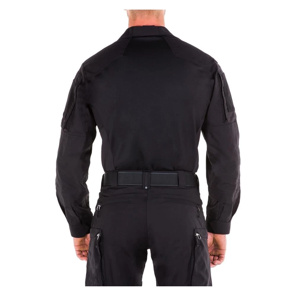 First Tactical’s Defender Series Shirts are the best of both worlds: performance built to handle any mission while maintaining the professional look needed when on normal patrol. In the performance department specialized pockets boast ample space for oversized gear, a specialized yoke eliminates unwanted bulk, and oversized sleeve pockets accept patches or embroidery. Creating the perfect warm weather shirt was at the forefront of design as articulated elbows, running gussets, and vented mesh locations provide advanced movement and breathability.