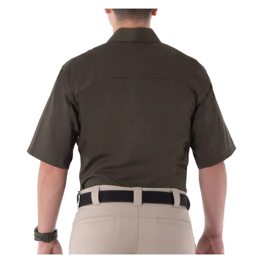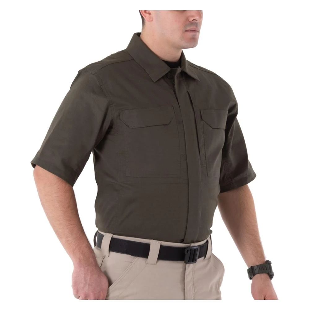The V2 Shirts represent years of research, development, and user input to provide a best in class, performance driven shirt to handle any situation. Inset pockets with reinforced flaps provide a neat, clean, and professional look Gusseted construction under the arm provides maximum flexibility when in motion Mechanical stretch provides the ultimate in comfort, professionalism, and durability First, the fabric is dyed at the fiber stage to ensure that color is ingrained at the beginning of the process. Second, it is dyed after the fibers have been woven into fabric for extended color protection up to 50 washes.