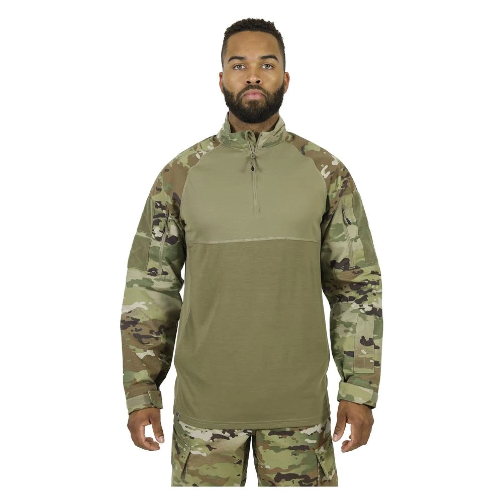 Comfort is key. This combat shirt touts a fine-knit mesh material for the collar in order to reduce chafing. The fabric is soft to the touch while still holding its shape.