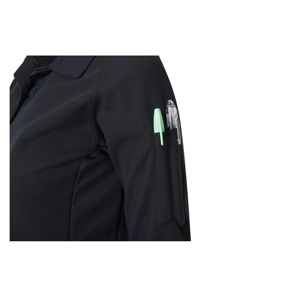 With the Vertx Coldblack Long Sleeve Polo, you can get a duty shirt with a dark color without burning up in the sun. This polo incorporates Coldblack technology to provide protection from UV light and the sun’s rays, so you’ll stay cool even in dark colors. This polo wicks moisture and offers at least 30 SPF protection, making it a great defense against direct sunlight. For performance purposes, this shirt is athletically patterned with no-fade polyester fabric for a sharp look even after several wash cycles. The left sleeve has a dual-welted pen pocket and mic tab or sunglasses loop at the base of the placket for on-duty wear.